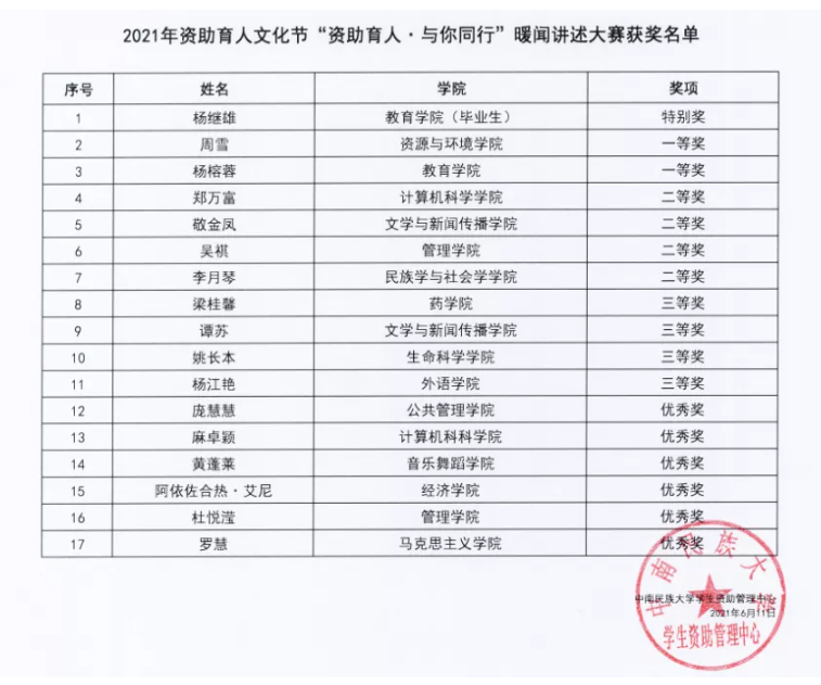 (三)“资助育人·与你同行”暖闻讲述大赛获奖名单
