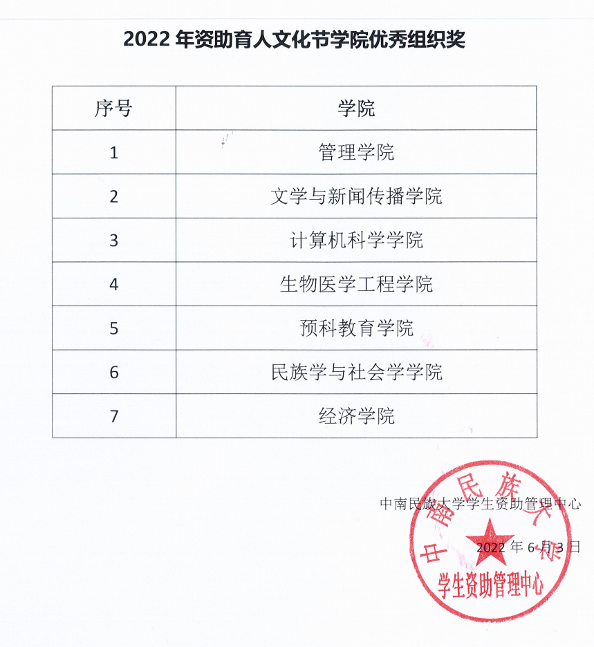 四、2022年“资助育人文化节”学院优秀组织奖获奖名单