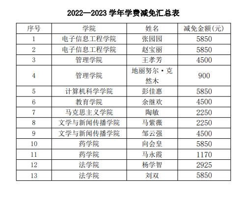 为进一步做好威尼斯官网学生资助工作,帮助家庭经济困难学生减轻生活压力,激励学生刻苦学习,帮助学生顺利完成学业,根据《关于印发威尼斯886699学生资助相关办法(试行)的通知》(民大发【2014】61号)等文件精神,经学生个人申请、学院初审、学生资助管理中心审核后将2022—2023学年学费减免、无息借款意见报学校学生奖励与资助工作领导小组审批通过,现将13名申请学费减免的学生及3名申请无息借款的学生名单公示如下: