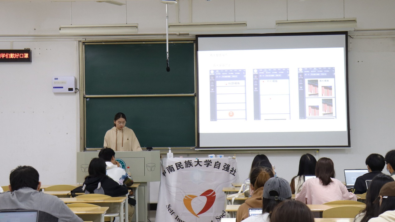 第一课时由张坤主讲,她以“秀米操作与公众号运营”为主题,从常用功能、基本格式等方面深入浅出地讲解了秀米编辑器的基本操作,又从编辑图文、自动回复等方面入手介绍了公众号运营的技巧。就如何增加阅读量的问题,张坤表示应在排版标准、页面边距、设置关键词等方面下功夫。在答疑环节中,张坤与学员们热情交流,回答了一系列关于推文写作的问题。第二课时由牟琪主讲,她立足于自强社具体宣传工作,从排版、配图等方面提出自己的观点与改进意见,以思维导图的形式建立知识网络,并结合错误案例使学员进一步深化了对推文写作的认知。最后,牟琪向学员布置了以“民大初印象”为主题的推文作业。
