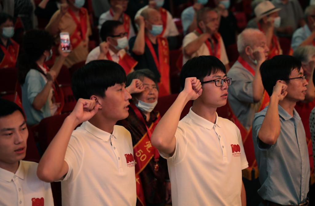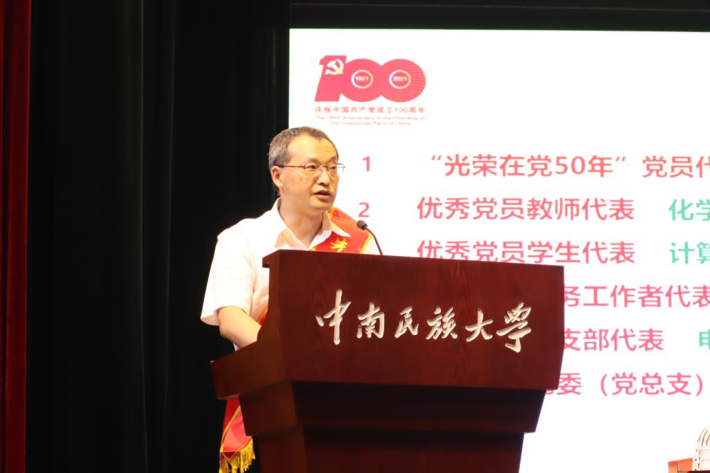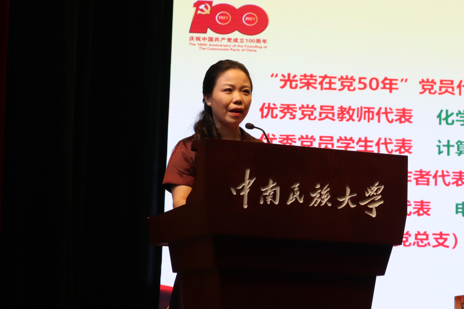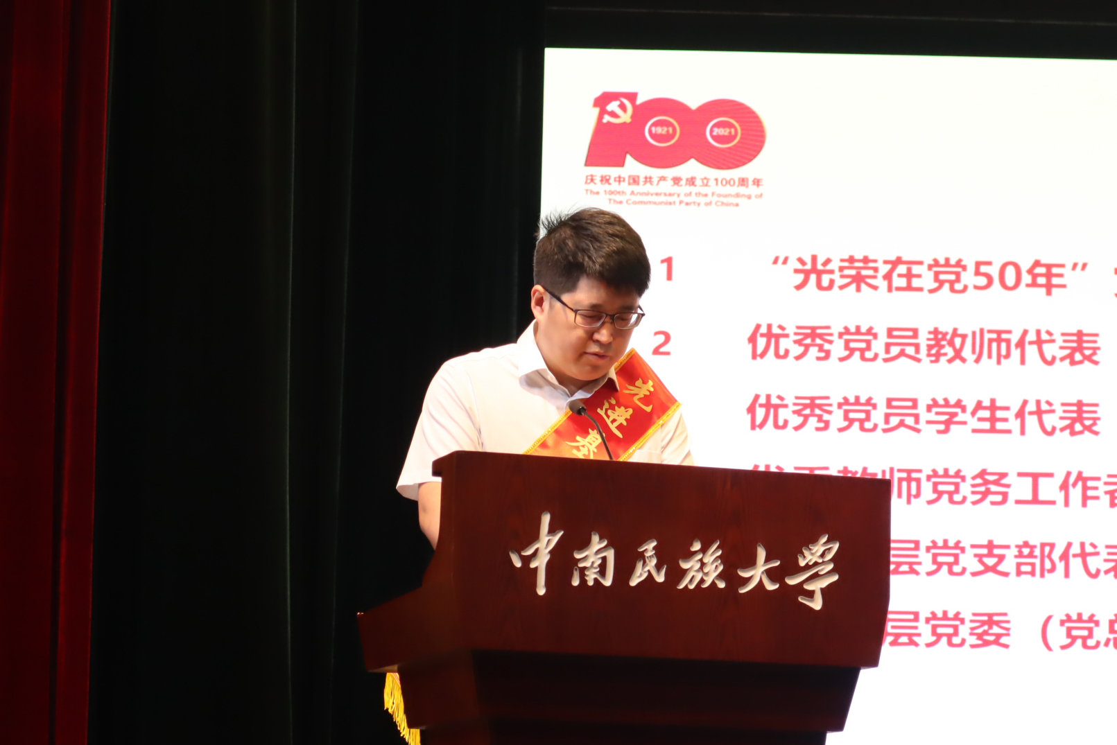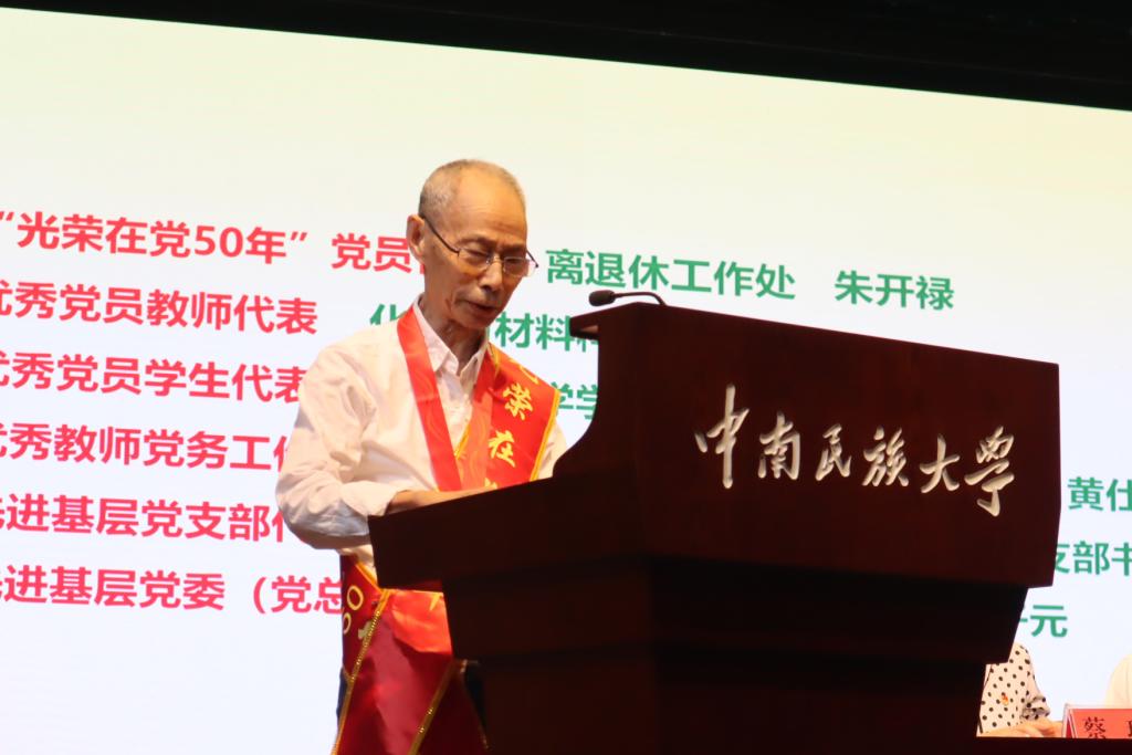 荣获“光荣在党50年”纪念章党员代表、离退休工作处党委离休党支部书记、87岁老同志朱开禄,饱含深情地回顾了老党员群体的入党初心和在党经历,抒发了对党永远忠诚的坚定信仰、为人民服务的使命担当。优秀共产党员教工代表、化材学院李琳,优秀共产党员学生代表、计科学院刘浩,优秀党务工作者代表、采购与招投标中心党支部书记黄仕清,先进基层党支部代表、电信学院教工创新团队党支部副书记崔勇强,先进基层党委(党总支)代表、美术学院党委书记刘子元等同志分别发言,汇报了在党的光辉指引下各自的工作、学习经历和体会,及党建工作的先进经验和做法,表达了为学校事业发展、为中华民族伟大复兴努力奋斗的信心和决心。