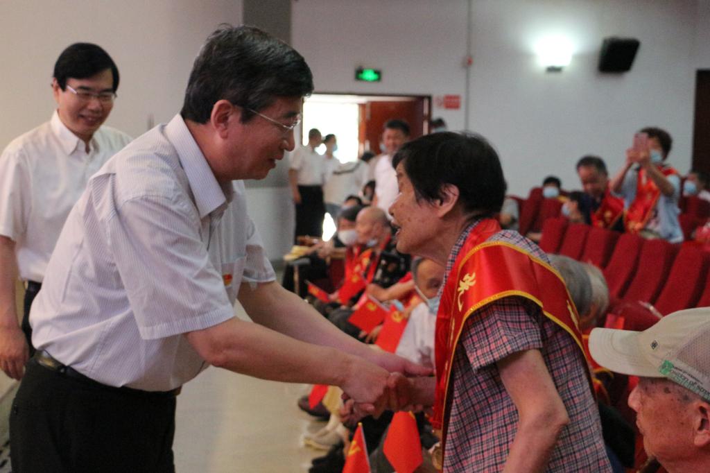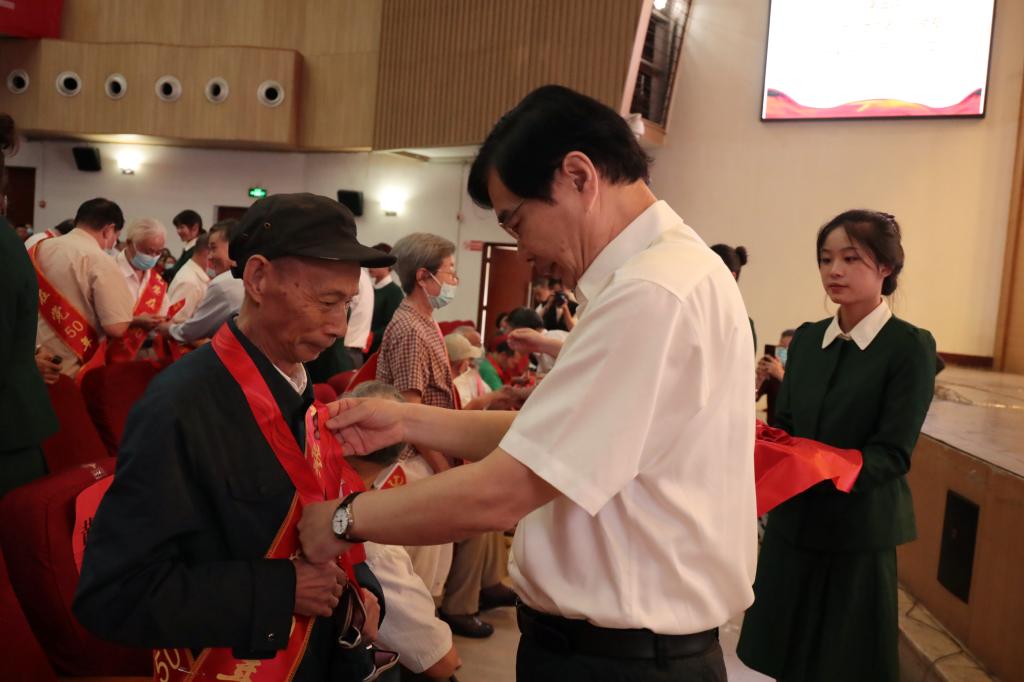 校党委书记边境为老党员颁发“光荣在党50年”纪念章。刘琦 摄