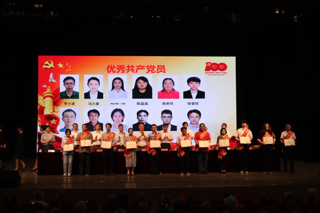 校党委常委为受表彰的优秀共产党员颁奖。马蕊 摄
