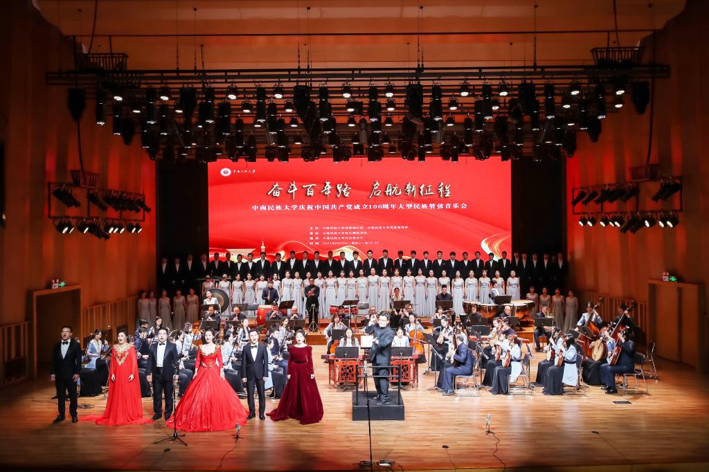 据悉,本次音乐会由校党委组织部、党委宣传部联合主办,音乐舞蹈学院承办。学校领导和各族师生代表共同欣赏了这场音乐盛会。音乐会前期筹办3月有余,从选择、联系演出人员,到每一个节目的精心排练,音乐舞蹈学院师生付出了满腔的热情和巨大的努力。音乐会总导演刘婷老师介绍说:“我们尽量使表演形式多样化,希望将演出与思政课堂进行良好的结合,让观众们在欣赏艺术美的过程中回望中国共产党的百年奋斗史,深刻感受我们党奋进新征程的磅礴力量。”