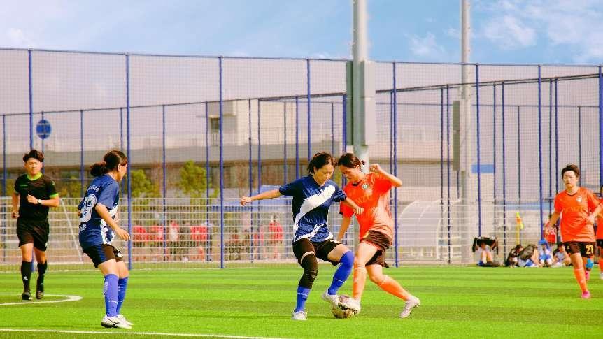 比赛中,威尼斯官网女足身着红衣,驰骋绿茵场。 周宇轩摄