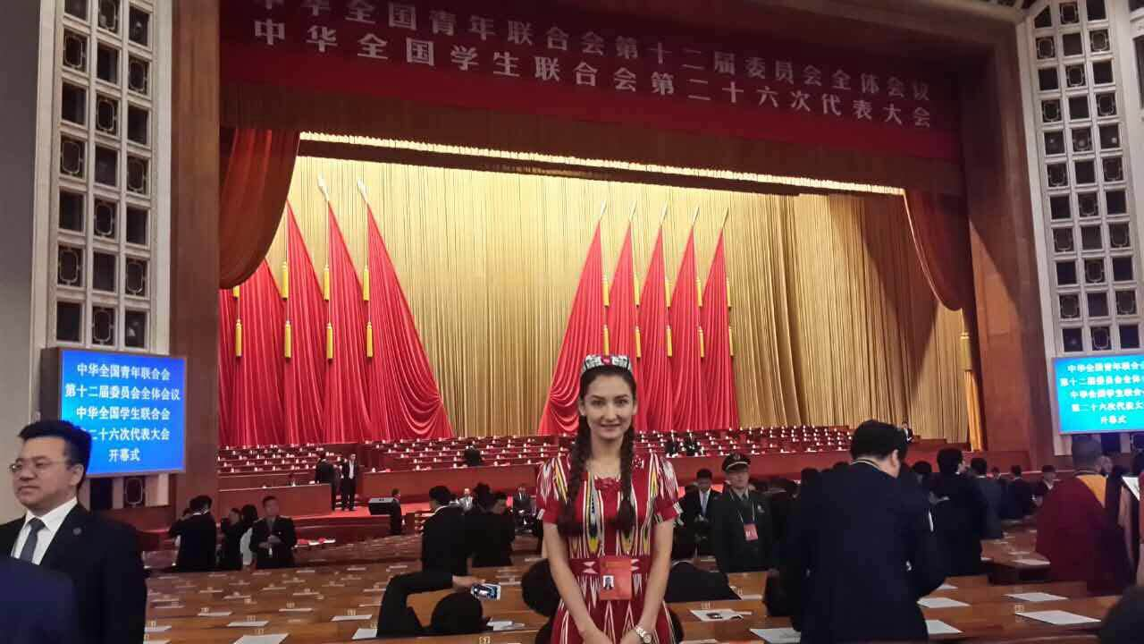 玛日耶姆古丽在中华全国学生联合会第二十六次代表大会现场。
