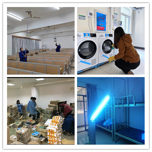为师生们营造健康、整洁、温馨的学习生活环境,学校开展了全方位的校园清洁消毒、安全隐患排查等工作。水电改造、校园美化、物资供应、环境整治、场馆维修等工作也在各单位共同努力下有条不紊地完成。