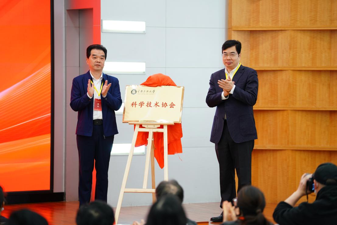 朱志斌(左)和李金林共同为校科协揭牌。 科发院供图