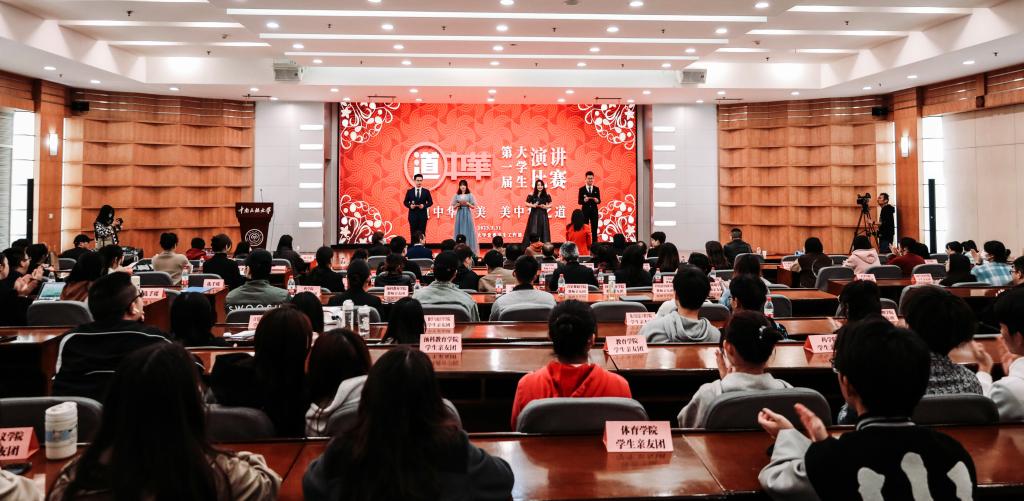 本次演讲比赛由学工部主办,设中文赛道和英文赛道,英文赛道由外语学院承办。比赛流程分为初赛、复赛和决赛三个环节,来自全校23个学院的一千余名学生参与,历经各学院的层层选拔,共有49位选手晋级校级决赛。此次演讲比赛还吸引了来自越南、印度尼西亚、刚果(金)等国家国际留学生的广泛参与,他们通过在中国的所见、所思、所感,从中国传统节日和书法艺术等多个方面,展示他们眼中的中国,讲述她们的中国故事。参赛选手以“道中华之美,美中华之道”为主题,聚焦铸牢中华民族共同体意识,弘扬中华优秀传统文化,充分展现了新时代青年大学生的爱国情怀和文化自信。