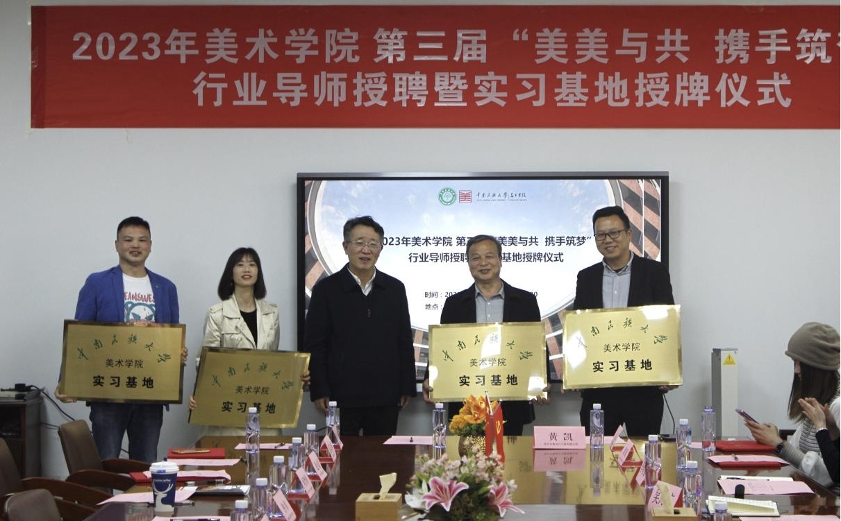 活动中,共有19位来自参会企业的资深行业专家受聘担任美术学院业界导师,学院与5家行业单位共建实习基地。与会领导为受聘行业导师颁发了聘书,为实习基地授牌。