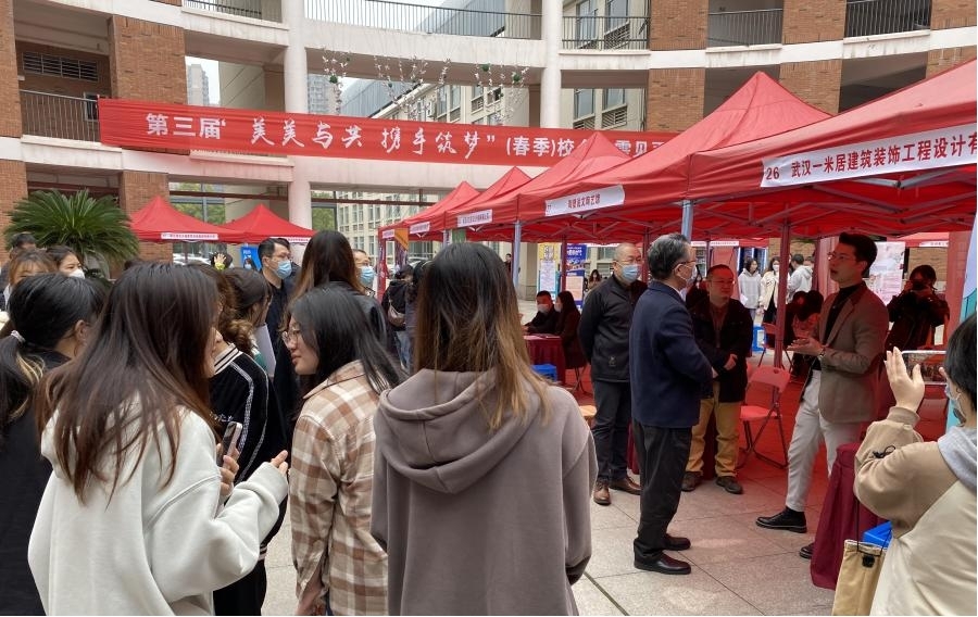 上午9时,2023届毕业生供需见面会在美术学院圆楼户外广场举行。北京、上海和武汉等地的45家用人单位参加招聘,提供美术设计、媒体运营、市场营销、商务管理、文案策划等岗位380余个。校党委副书记白江源来到招聘现场,与美术学院班子成员、专业教师一起和各企业代表、求职学生面对面交流,了解企业近期招聘要求及未来几年的人才储备计划,询问毕业生的就业期望。他鼓励同学们树立正确的择业观,做好长远的职业规划,理性看待就业形势,把握政策导向,转变就业观念。
