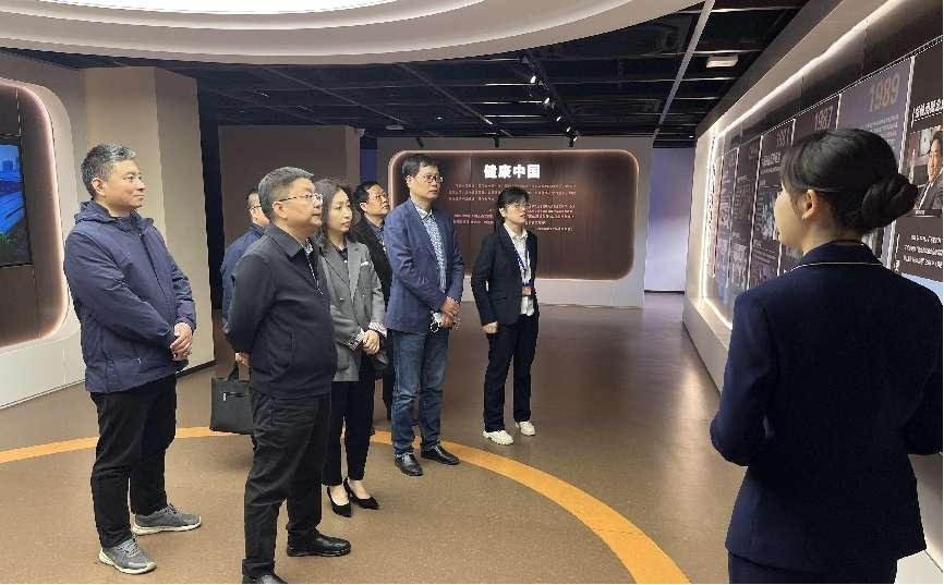 乔俊杰一行参观了劲牌持正堂药业智慧药房、劲牌研究院、山南提取中心及公司总部品牌展馆。