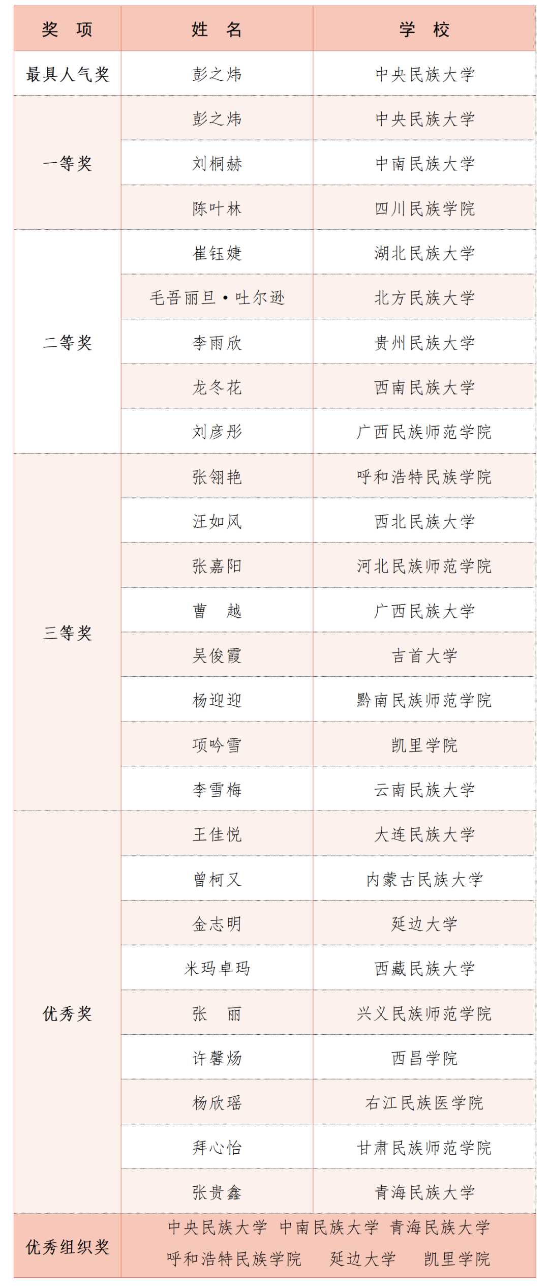 获奖名单