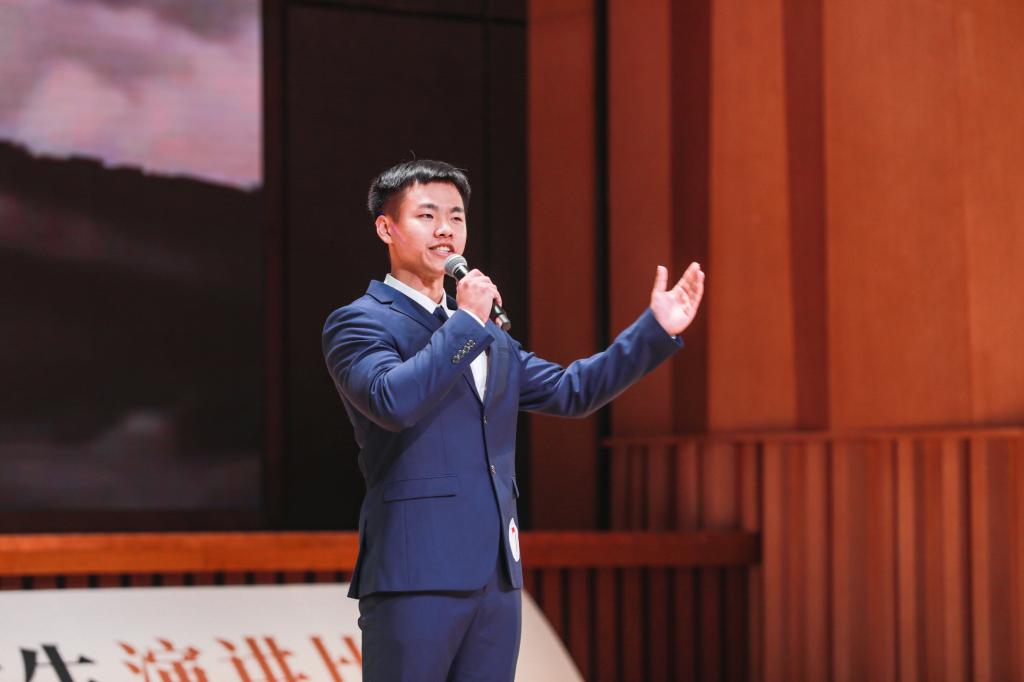 在威尼斯官网学生带来合唱歌曲《我和我的祖国》之后,参赛选手依次上台演讲。来自中央民族大学的参赛选手彭之炜分享了她作为庆祝中国共产党成立100周年天安门广场献词团成员的经历和感受,“从刚开始排练时的此起彼伏到最后呈现出来完美乐章,让我再一次重温了那份初心与感动。”她号召青年学生做中华之美的发现者,做扎根中华大地、书写中华之道的奋斗者。