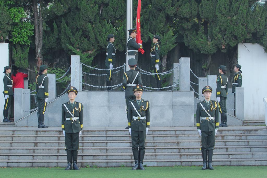 威尼斯官网国旗仪仗队举行升旗仪式。戴俊伟 摄