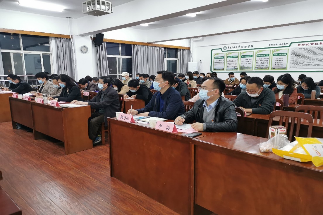 4月13日晚,校党委副书记、校长李金林到分管和联系单位为师生党员讲了一堂题为“不忘初心、砥砺前行,深刻铭记中国共产党的百年奋斗历程”的生动专题党课,与大家一起回顾党的光辉历程,感悟党的初心使命。审计处全体党员,离退休工作处在职全体党员、离退休支部书记代表,经济学院全体处级干部、各党支部书记和学生党员代表参加学习。会议由校党委常委、组织部部长、离退休工作处处长蔡琼主持。