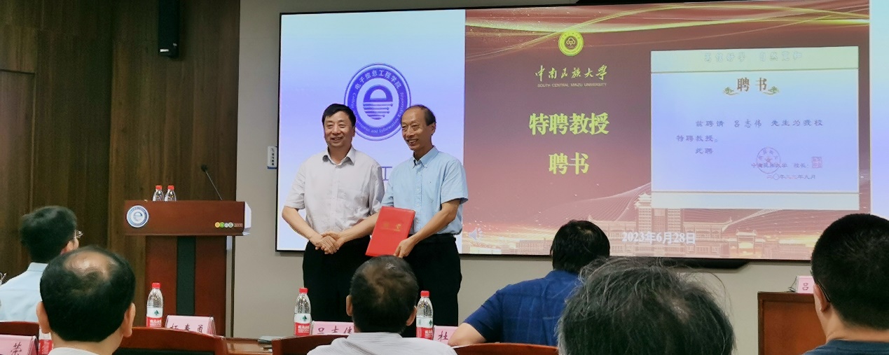 杜冬云为吕志伟教授(右)颁发聘书。唐红文摄
