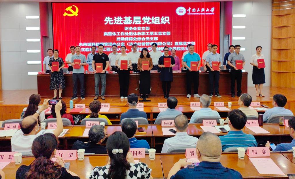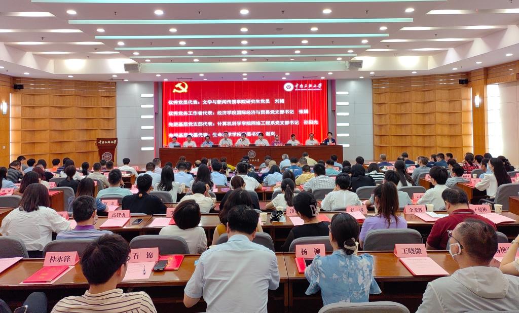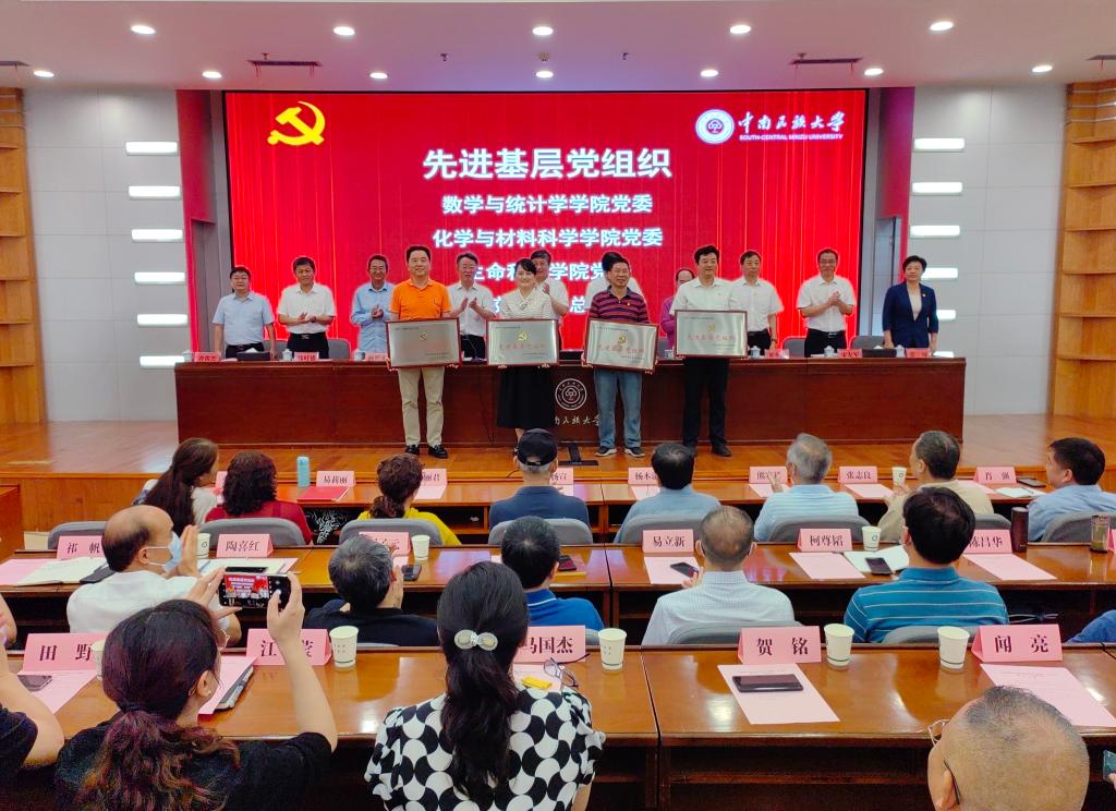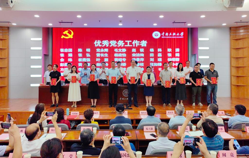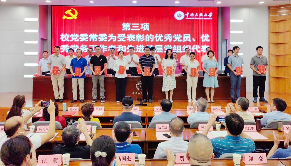 校党委常委为受表彰的优秀党员、优秀党务工作者和先进基层党组织代表颁奖。柳斌摄