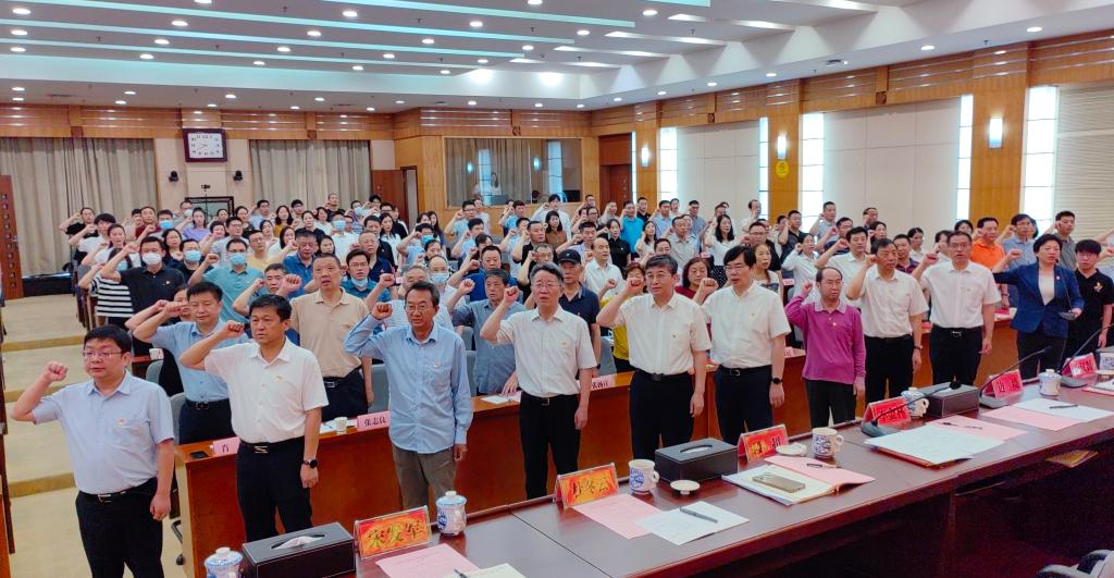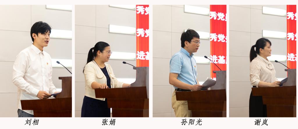 文传学院研究生党员刘相、经济学院国际经济与贸易专业党支部书记张娟、计科学院网络工程系党支部书记孙阳光和生科学院党委书记谢岚分别作交流发言。由校党委常委、组织部长蔡琼领誓,新党员进行入党宣誓,老党员重温入党誓词。