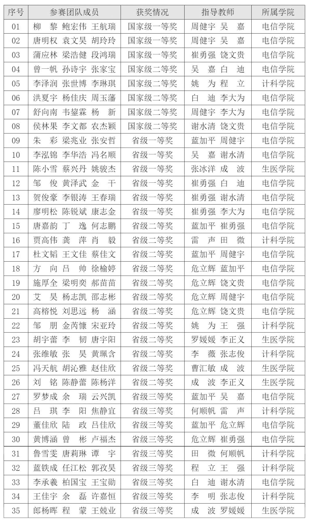 为培养学生实践能力和创新精神,长期以来,创新创业学院与各学院合力开展“第二课堂”培养学生的工程实践能力,鼓励和支持学生参加高水平学科竞赛。在此次竞赛中,电子信息工程学院表现出色。该学院建有设施优良的创新实验室,组建了高水平的创新教师团队,制定了完善的系统化创新培养体系,定期开展电子设计协会专业基础培训、“求真杯”电子设计竞赛等系列创新活动和课外培训,让学生将所学用于实践,切实提高专业能力。