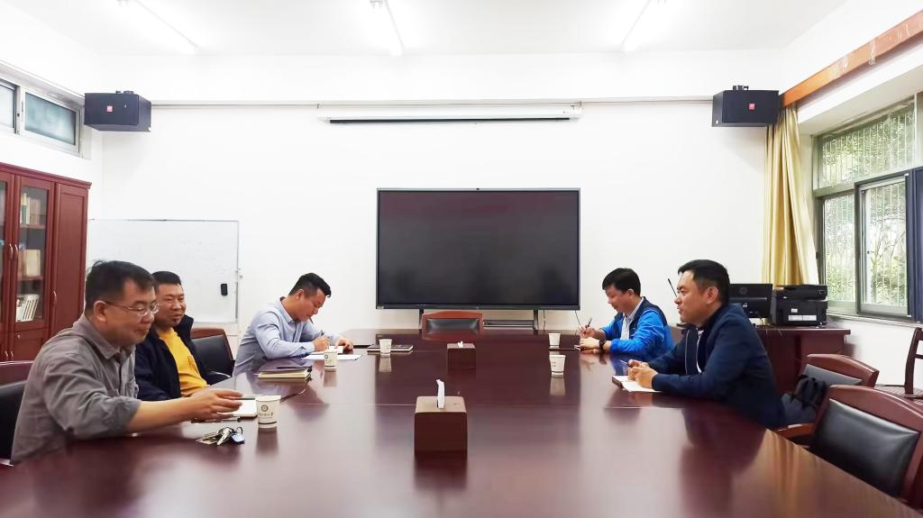 三朗扎西(右一)在法学院调研。 法学院供图