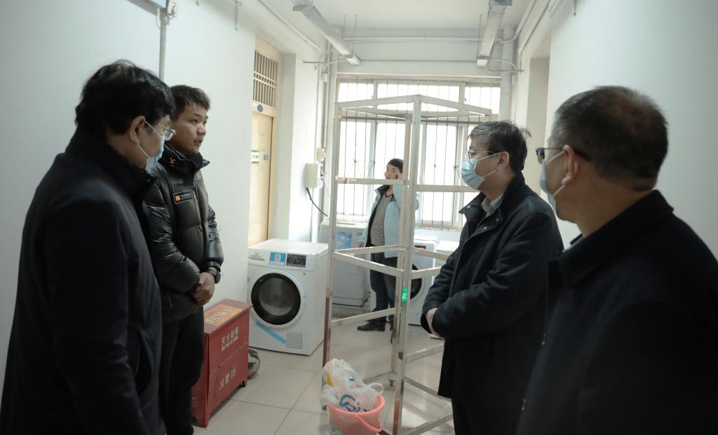 检查组一行前往学生宿舍、食堂、超市、快递点、防疫物资储备点、校医院、医学观察点、国际教育学院、体育馆、教室、实验室、图书馆、科技企业孵化器、幼儿园、民大社区、离退休工作处等地点,重点询问了开学前校园公共卫生、宿舍卫生清理情况,详细了解了新学期课程安排、学生管理、后勤服务、安全保卫、防火防盗、物资储备、应急处置等方面的准备工作。