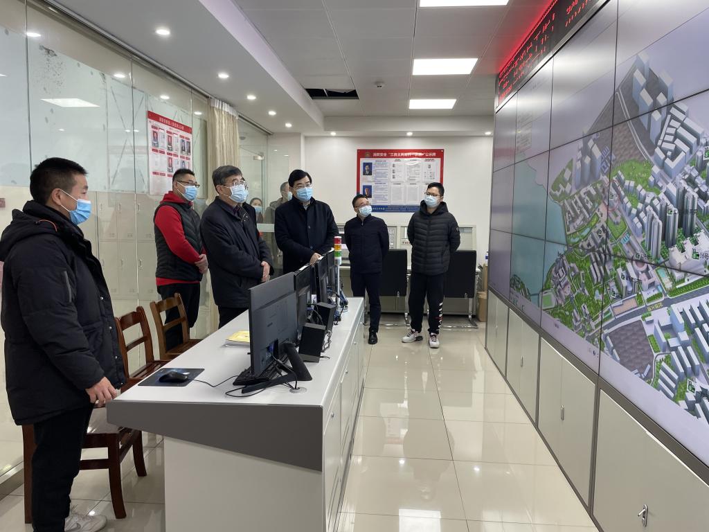 在保卫处监控室,安保人员通过大屏幕仔细查看学校各路段安全情况及火警情况。校领导一行询问了寒假期间学校的安全保障举措,向多年来节假日坚守岗位、保障校园平安稳定的工作人员表示深切慰问。