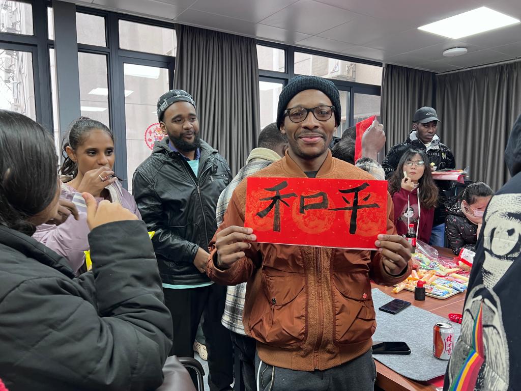 本次活动是学校为丰富留校学生寒假校园生活举办的系列活动之一,旨在让学生们体会年的味道、感受家的温暖、增进同学情谊。越南留学生陈维贵表示,“在这次迎新年活动中,我非常开心,收获很大,不仅体验到中国书法、剪纸等中华传统文化魅力,还认识了许多中国朋友,热闹欢快的氛围缓解了我对家乡的思念。”卢旺达留学生夏天表示,“作为一个在中国过春节的留学生来说,今天是我期待已久的一天。今天不仅是我第一次过中国的小年,也是第一次和中国同学一起玩中国传统游戏,我感受到了浓浓的中国年味,感谢学校给我们提供这样宝贵的机会。”刚果(金)留学生鲁安用毛笔写下了汉字“和平”,并表示,“非常高兴能够参加学校组织的迎新年活动,在民大的学习和生活让我受益匪浅,我时刻可以感受到民大和谐、平安的氛围,祝愿世界和平、明天更加美好。”文学与新闻传播学院学生蔡有发表示,“我在此次活动中的最大感受就是欢乐和温馨。同学们在初次见面时的相互问候、游戏中的互帮互助、写对联剪窗花的互动交流中,增进了彼此的了解和友谊。从每一位老师和同学脸上洋溢的幸福笑容中,我感受到浓浓的年味和家的温暖。”