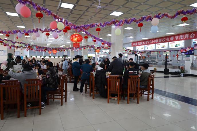 学生三食堂、四食堂内张灯结彩,热闹非凡。喜庆的灯笼、响亮的电子炮仗、美丽的中国结和随处可见的“福”字窗花,无不烘托出欢乐祥和的节日氛围,让初春的校园充满了暖意与温馨。