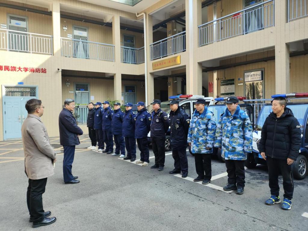 在校园110报警指挥中心、监控室和门岗值班室,边境向节日期间坚守岗位的校卫队员和门岗队员表示感谢,并致以新春问候。他表示,春节期间,保卫战线成员坚守岗位,舍小家顾大家,用自己的辛苦换来校园安宁,为维护师生安全、营造和谐稳定校园治安环境做出了贡献。希望大家继续发扬优良传统,以高度的责任感和使命感,扎实做好校园安全保卫工作。