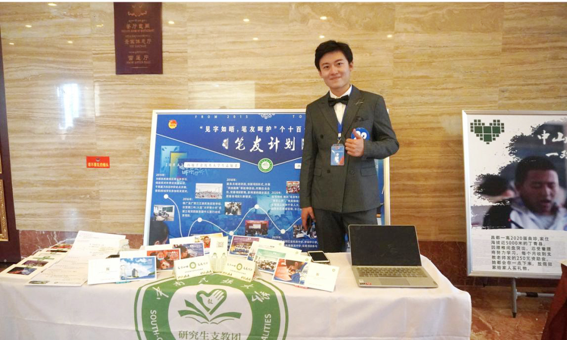 刘相作为“笔友计划”项目负责人在西藏志愿服务项目大赛现场。 文学与新闻传播学院供图
