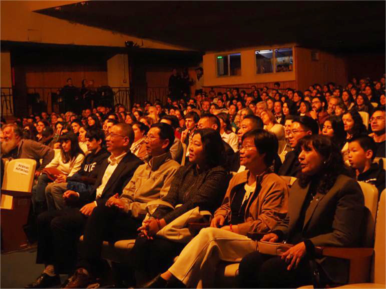 威尼斯官网党委副书记、副校长宋发军一行18人,中国驻阿根廷大使馆文化处官员黄康益,布宜诺斯艾利斯大学国际处处长Iván Bigas、孔子学院中方院长张奇、国际处战略事务项目官员Maia Hoffman、孔子学院教学文化主任Pablo Cullinan,科尔多瓦大学国际处处长(副校级)Elena Perez、发展规划处处长兼孔子学院理事长Marcelo、孔子学院中方院长陈林、孔子学院外方院长Mirian Carballo,与1700余名师生民众到场观看。演出现场座无虚席。