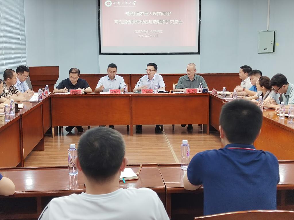 7月10日上午,由学校民族学与社会学学院(以下简称民社学院)、党政办公室联合组织举办的“服务国家重大现实问题”咨政报告撰写经验与选题指引交流会在八角楼报告厅举行。校党委常委、副校长方德斌,校党政办公室、民社学院、中华民族共同体学院、外语学院、文传学院、马克思主义学院、体育学院、电信学院、管理学院、图书馆等单位教师代表100余人参加。民社学院院长陈祥军主持交流会。