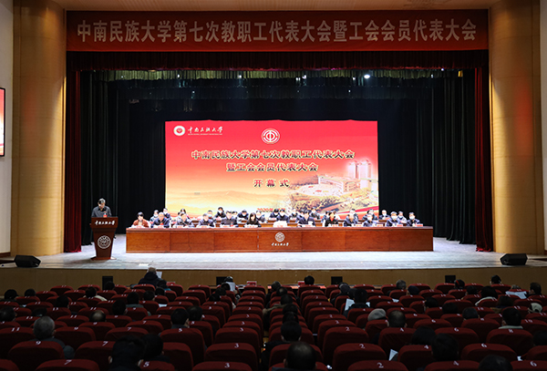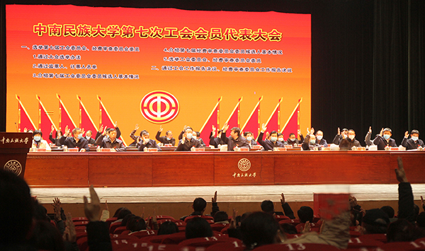 校党委副书记、副校长、校工会主席宋发军以《凝心聚力 团结奋进 为建成现代化高水平民族大学贡献力量》为题作工会工作报告。报告回顾了第六届工会委员会5年来的工作,提出了今后5年工会工作的努力方向:大力推进凝心聚力工程,引领教职工听党话、跟党走;深入实施维权帮扶工程,更好满足教职工对美好生活的向往;扎实开展固本强基工程,不断增强工会组织的吸引力和影响力。