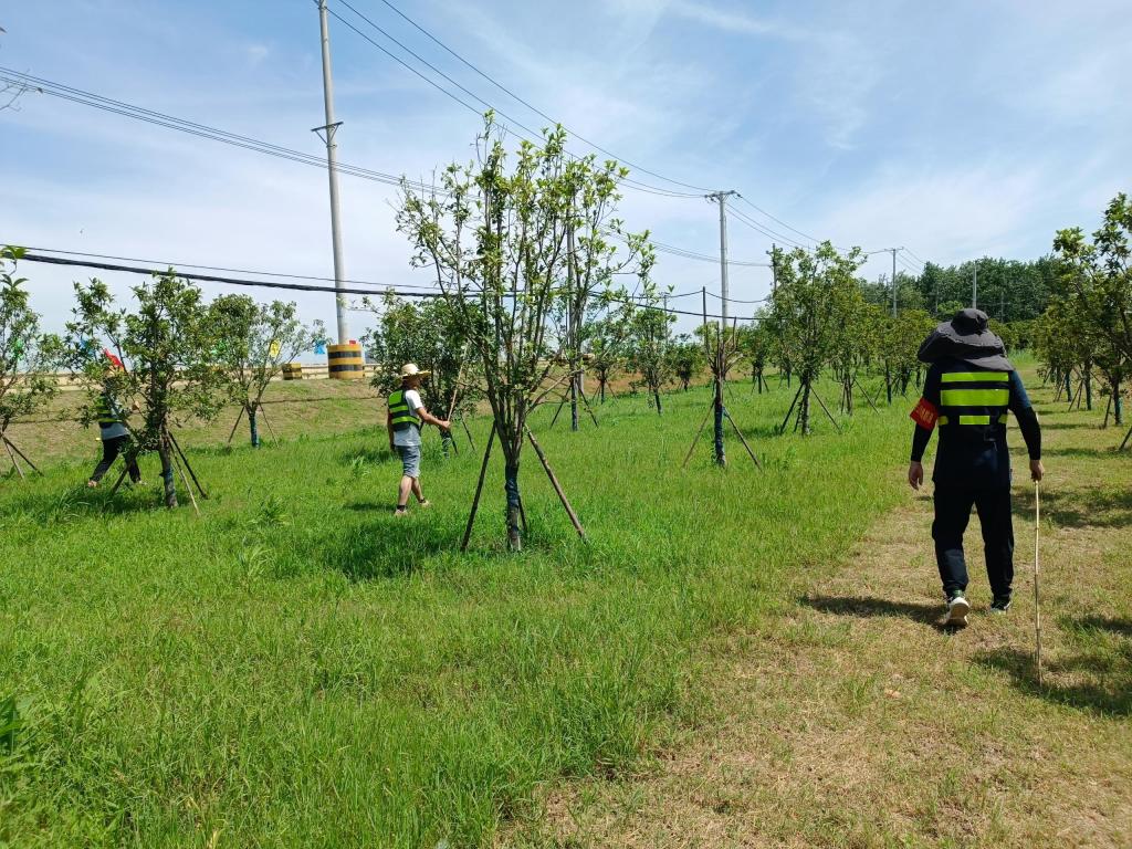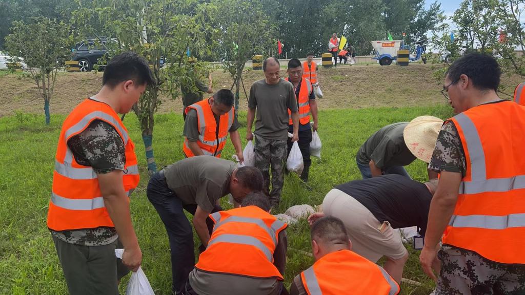 防汛突击队员在烈日下巡堤。 后勤保障处供图