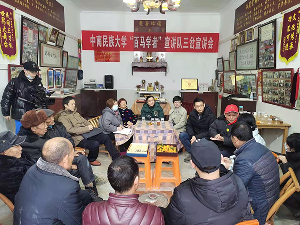 宣讲队还深入村镇社区,在村民家的屋场上、院坝里、火炉旁,用老百姓喜闻乐见的各种形式开展理论宣讲。各位成员通过与基层干部群众“面对面”“心连心”,共话脱贫致富美好生活,展望美丽乡村蓝图,在和谐融洽的气氛中通俗易懂地宣讲党的最新理论成果和重大方针政策,让老百姓听得懂、听得进,推动党的十九届五中全会精神的学习宣传贯彻往深里走、往心里走、往实里走。