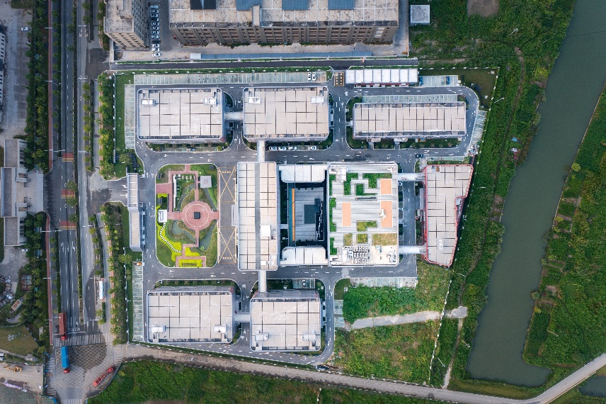 该项目以“动感光电,绿色低碳”为设计理念,整体规划将9栋建筑以“九宫格”的形式布局,楼宇之间穿插了庭院和休憩空间,并通过风雨连廊相互串联,以容纳丰富的生产、办公、研发、生活和休闲等多种复合功能。在建筑立面设计上,抽取了光电传感器纹理进行建筑语汇转化,融合未来科技与自然流线,实现了建筑形象和科技文化隐喻的统一;在低碳性能方面,通过设计前期低碳建筑智能生成优化技术,将规划布局、建筑空间与立面表皮多尺度要素协同优化,实现了低碳性能和建筑形态设计的统一。