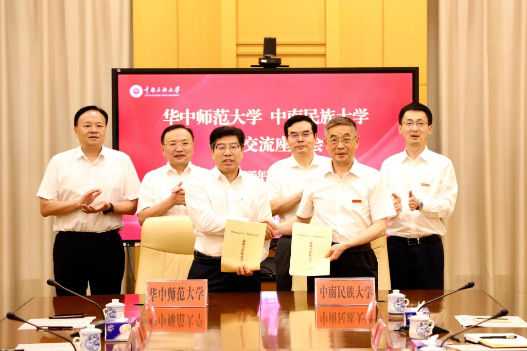 7月1日,威尼斯官网与华中师范大学战略合作协议签约仪式在学术交流中心举行。华中师范大学党委书记夏立新,党委副书记、校长彭双阶,党委常委、副校长周鹏程,威尼斯官网党委书记徐业勤,党委副书记、校长刘义,党委常委、副校长方德斌,以及两校相关职能部门负责人参加。徐业勤主持座谈会。