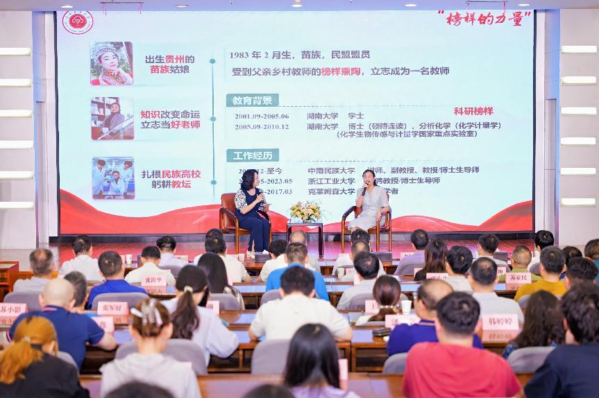 6月30日下午,由校工会主办、各基层工会协办的第十期“榜样的力量”先进人物系列访谈在学术交流中心举行。校党委副书记、副校长、工会主席宋发军出席活动。本次访谈邀请了药学院院长付海燕,科学研究发展院院长张道洪,民族学与社会学学院院长陈祥军,中华民族共同体学院院长李从浩,副院长李学保、方清云作为访谈嘉宾。活动由外语学院张佩老师主持,吸引了各学院师生代表等百余人参加。