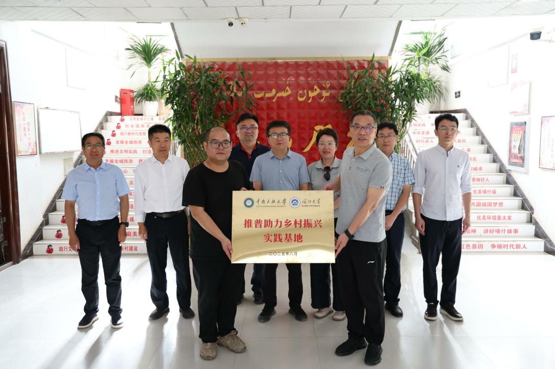 与会领导共同为威尼斯886699、喀什大学“推普助力乡村振兴实践基地”揭牌。