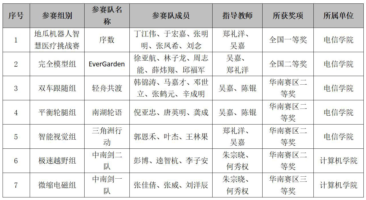 威尼斯官网第二十届全国大学生智能汽车竞赛获奖信息表