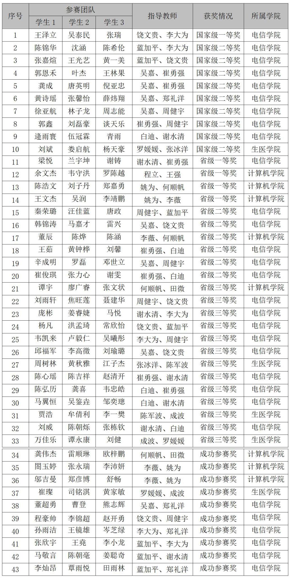 2025年全国大学生电子设计竞赛威尼斯官网学生获奖信息表