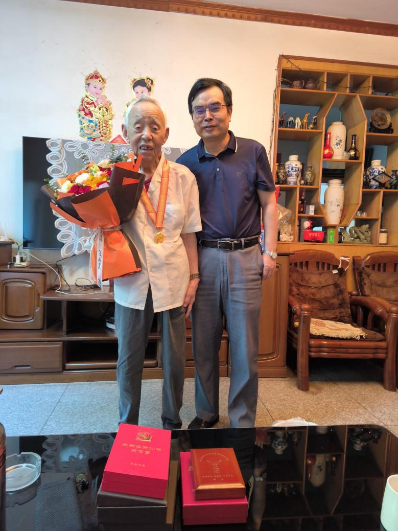 为纪念中国人民抗日战争暨世界反法西斯战争胜利80周年,根据上级有关精神和学校统一部署,9月1日上午,校党委书记徐业勤带领党政办公室、党委组织部、离退休工作处等部门主要负责同志看望慰问抗战时期参加革命工作的谢洪义老同志,向其颁发“中国人民抗日战争胜利80周年”纪念章,并致以崇高敬意和诚挚问候。