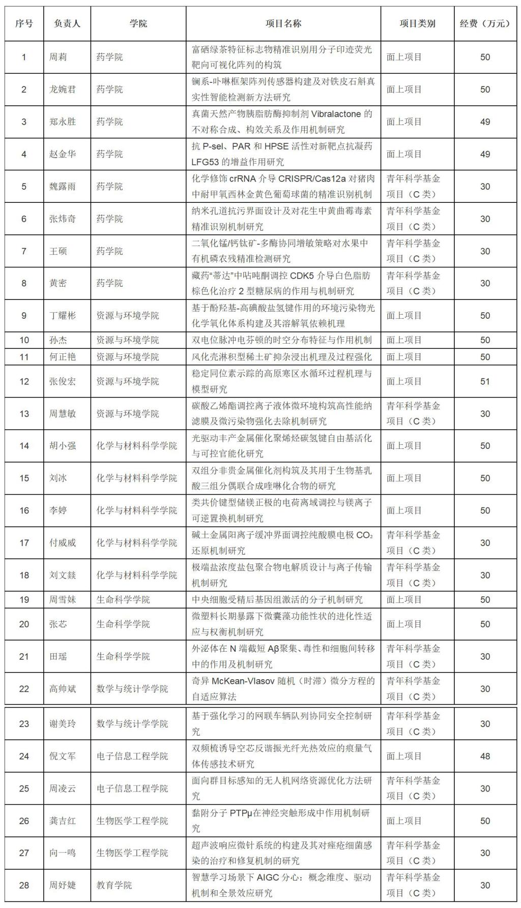 威尼斯官网2025年度国家自然科学基金项目立项清单