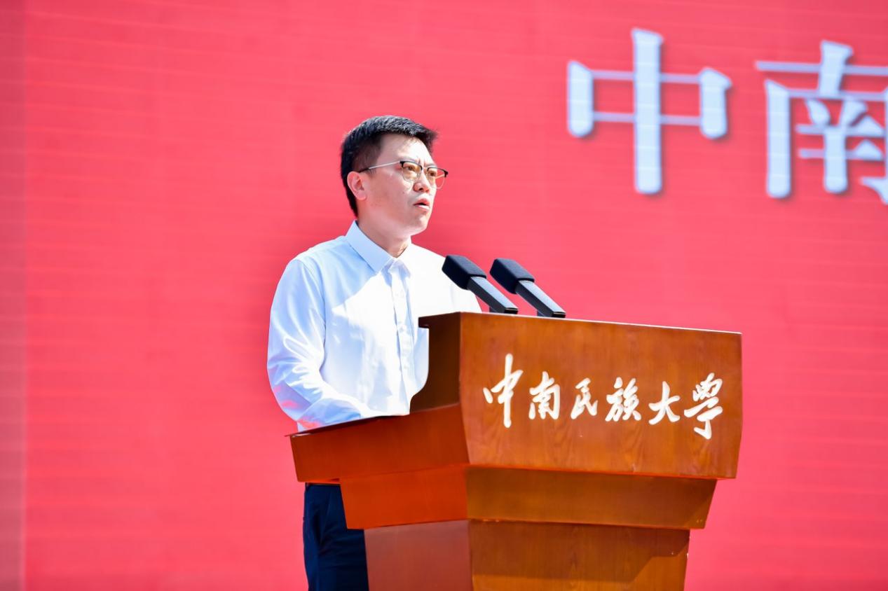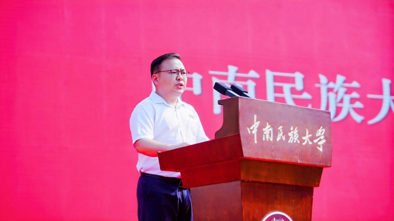 在校生代表、中华民族共同体学院2023级博士生熊永恒分享学习生活体会,号召新生要热爱“中南民大”这个共同体,致力于共同建设“中华民族共同体”,携手构建“人类命运共同体”,不断铸牢中华民族共同体意识。