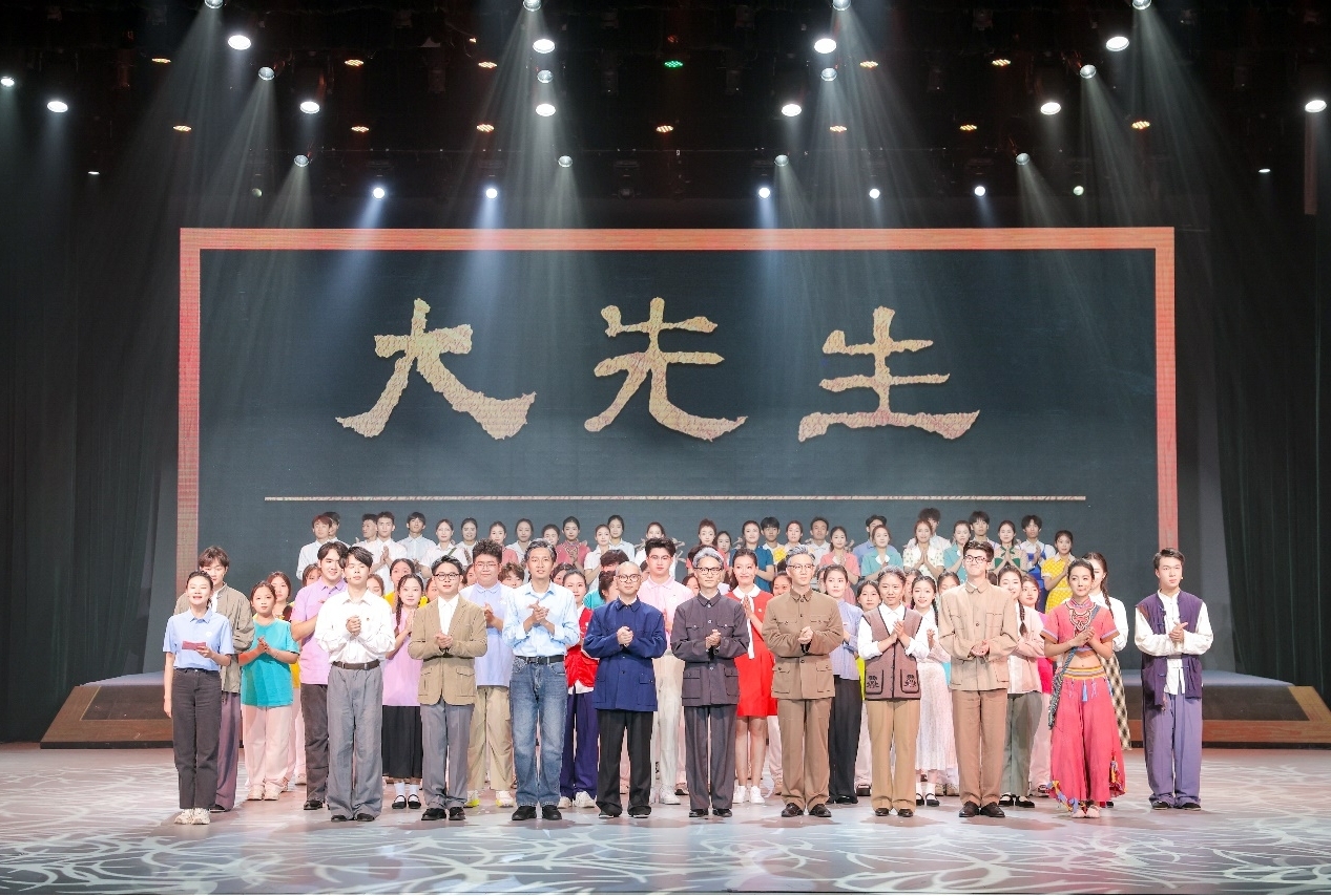 话剧《大先生》以学校办学历程为叙事主线,通过青年学子寻访校史照片的线索,打破时空界限,让学校三代教育者在同一命题下展开对话,通过白瑞西、吴泽霖、严学宭等创校先贤在民族危亡之际“教育救国”的拓荒实践,柏贵喜教授等学者“教育报国”的田野坚守,以及台下新时代师生“教育强国”的使命呼应,实现“角色—演员—观众”三重身份的融合升华。演出巧妙融入《西兰卡普》《曙光》等特色歌舞片段,打造了一堂融校史传承、思政教育与美育浸润于一体的“大思政课”新范式,让师生在艺术沉浸中触摸教育家精神的温度。