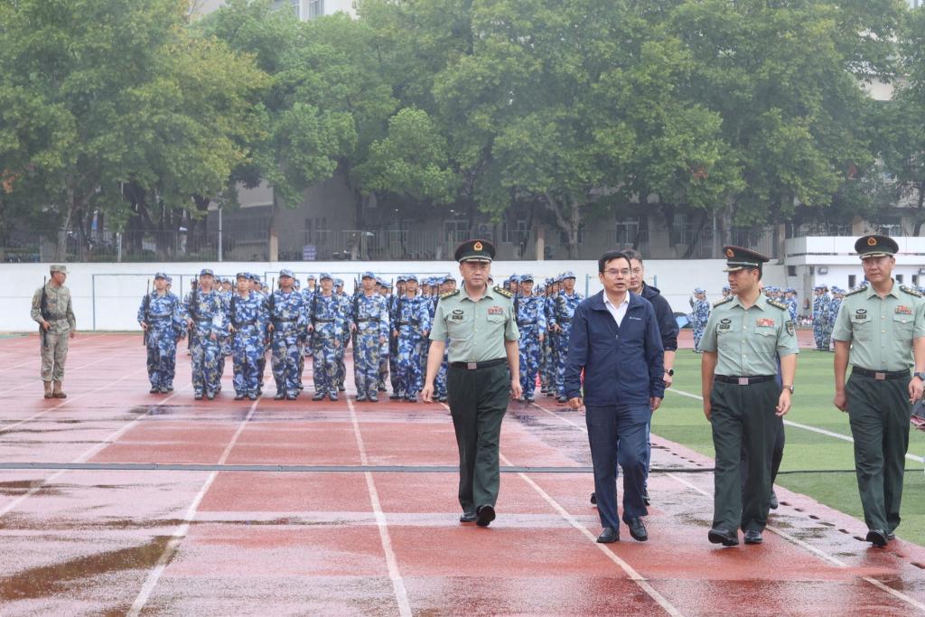 座谈会前,徐业勤陪同孙宏伟一行深入新生军训训练场地,实地检查指导各营连训练实况,慰问全体教官和参训学生。训练场上,全体参训学员着装严整、动作刚健、口号响亮、斗志昂扬,充分展现了扎实的训练成果和奋发向上的精神风貌,两校领导对当前军训工作的阶段性成果给予了高度评价。