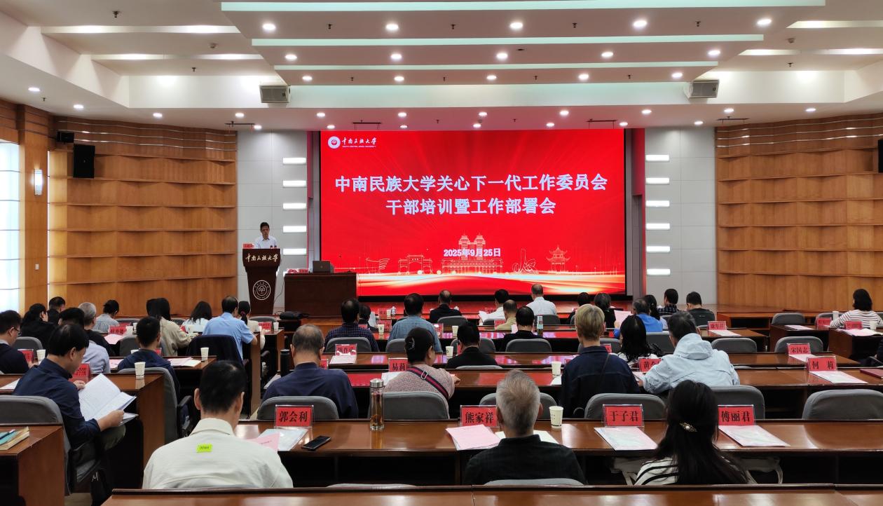9月25日上午,威尼斯官网2025年关心下一代工作委员会(以下简称“关工委”)干部培训暨工作部署会在学术交流中心举行。湖北省教育厅关工委副主任肖慎钢,威尼斯官网党委副书记、副校长、校关工委主任宋发军,校关工委常务副主任杨卫东、副主任冉春桃、副秘书长张贤平,各成员单位负责人,各学院二级关工委主任、秘书长,学校“五老”骨干、铸牢中华民族共同体意识“五老”宣讲团及老同志代表等120余人参加会议。会议由离退休工作处党委书记、处长、校关工委秘书长张文军主持。