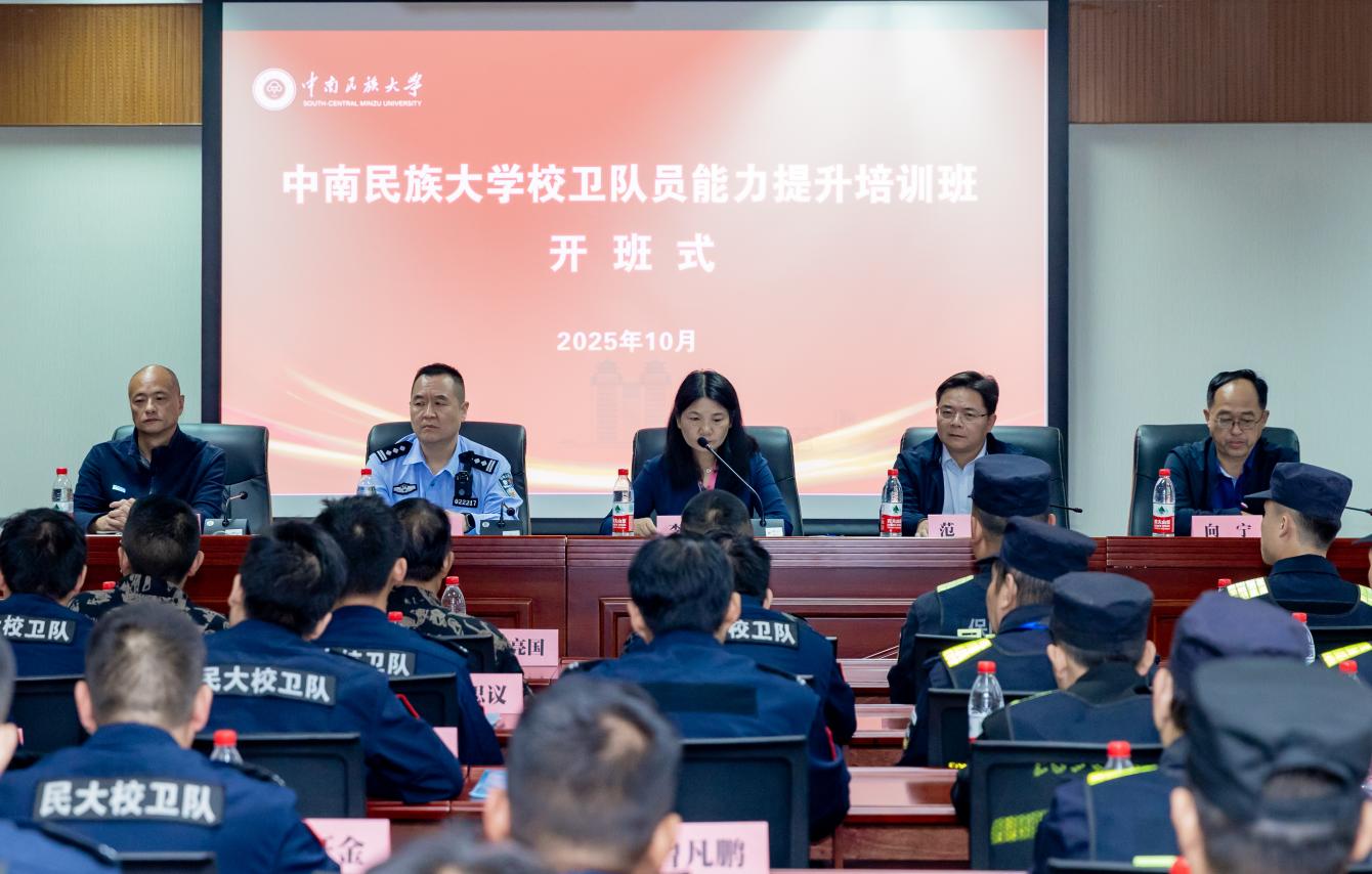据介绍,此次培训班旨在增强校卫队员应急处置能力,提升服务意识,推动中华民族共同体意识融入校园安全管理工作,为构建和谐平安校园凝聚合力。后续培训中,驻校民警罗浩警官将以《筑牢校园安全防线》为题,讲解治安管理、防盗防骗、突发事件先期处置等关键知识和技巧。保卫处副处长朱溢聚焦消防安全进行知识培训,帮助队员提升防范消防安全风险、处置初期火情的能力。