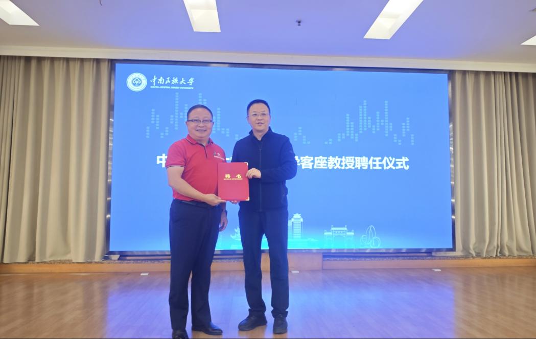 讲座开始前,举行了就业指导教育客座教授聘任仪式,覃瑞代表学校为高远飞颁发聘书。